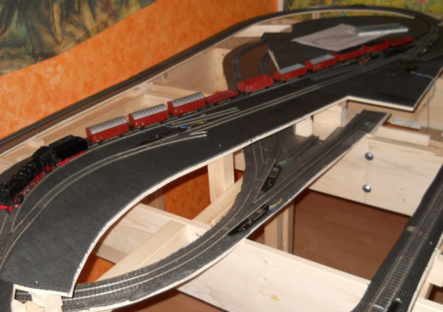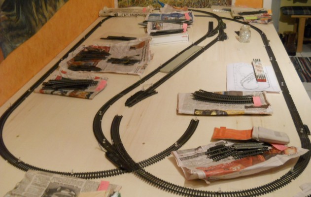 Im Modellbahnforum hat mir jemand einen geilen Gleisplan entworfen, den ich mit meinem Material grob umgesetzt habe.