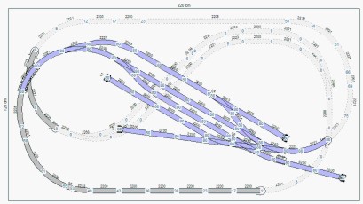 Der Gleisplan, später sieht man nur das blaue und graue |